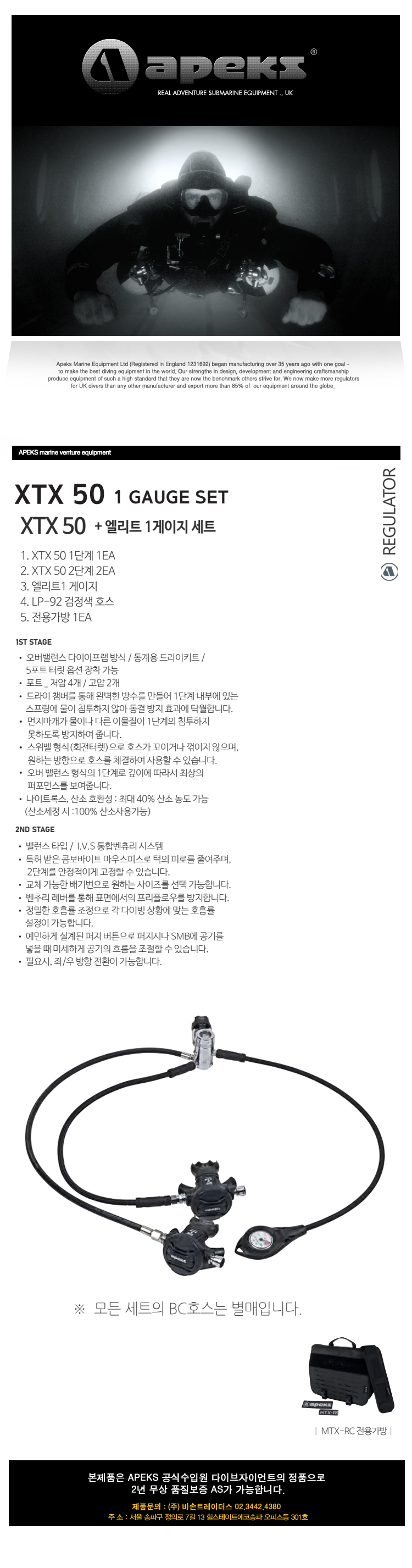 아펙스 스킨 스쿠버 다이빙 호흡기 레귤레이터 엘리트 1 게이지 세트 XTX50